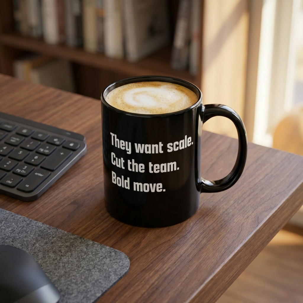 They Want Scale. Cut the Team. Bold Move. — 15oz Black Motivational Mug